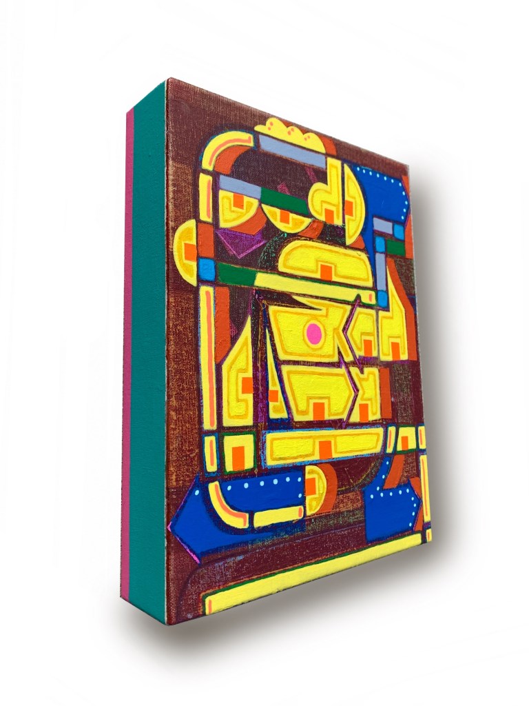 “God Jobs”, 2023, oil and acrylic on canvas stretched over panel, 12 in. x 9 in.